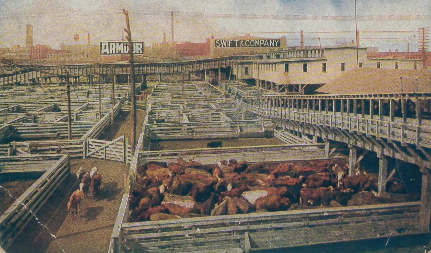 М’ясна промисловість була також важливою і переживала розквіт під час Другої світової війни, але після її закінчення вона повернулася до тенденції спаду, яка тривала аж до Великої депресії. У 1865 році відкрився Union Stock Yard, який став найбільшим у країні ринком худоби. У 1924 році він продав 18,6 мільйона голів великої рогатої худоби, свиней, овець і коней. Того ж року взимку рекордні 122 749 голів свиней надійшли на продаж у великий двоповерховий свинарник, що простягнувся на чотири квартали від Холстед-стріт до Расін-авеню. У 1927 році в Чикаго була найбільша кількість холодильних складів у країні, оскільки місто продовжувало домінувати в цій галузі.